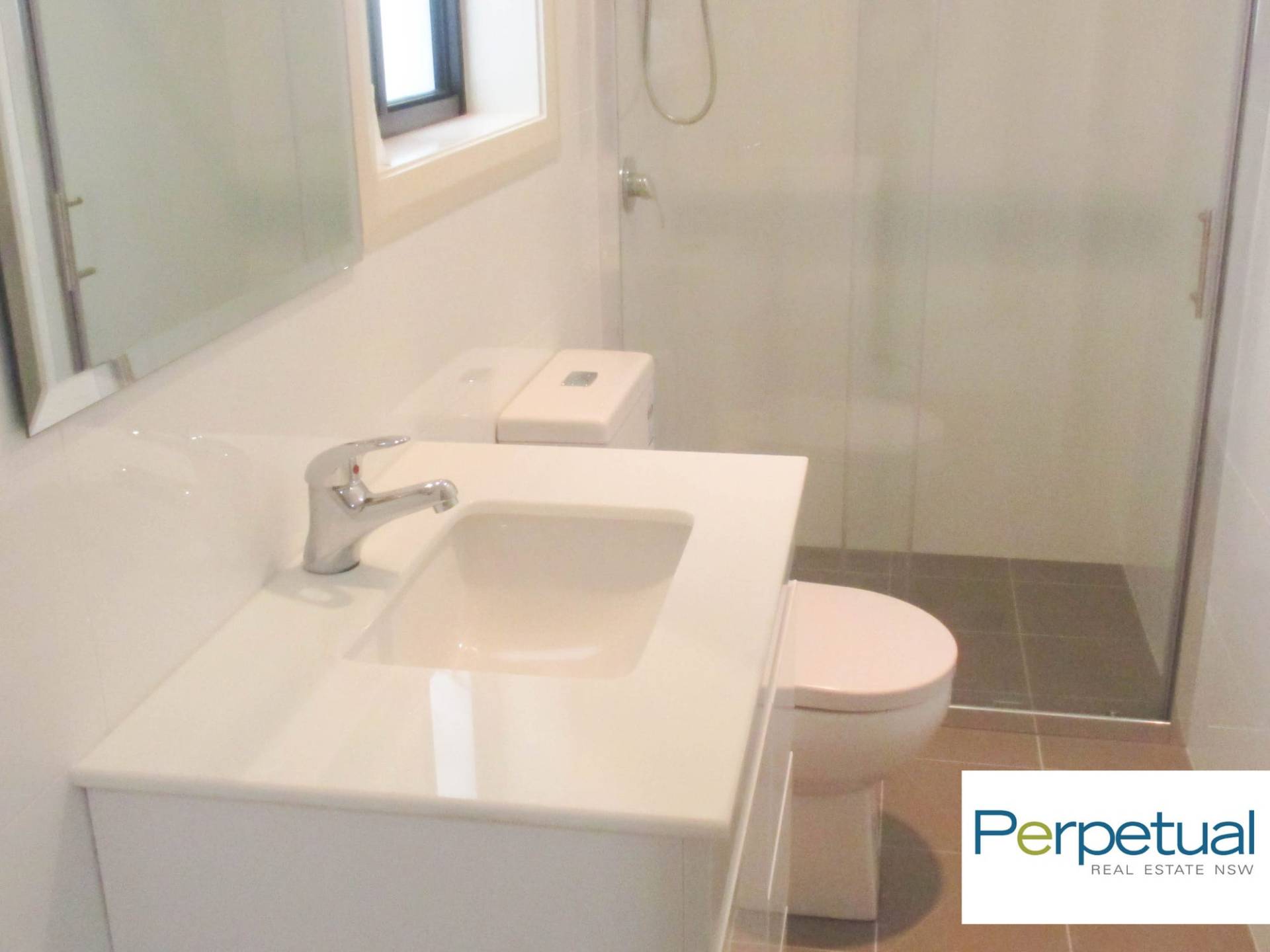 - Modern bathroom with beautiful vanity & spacious shower area