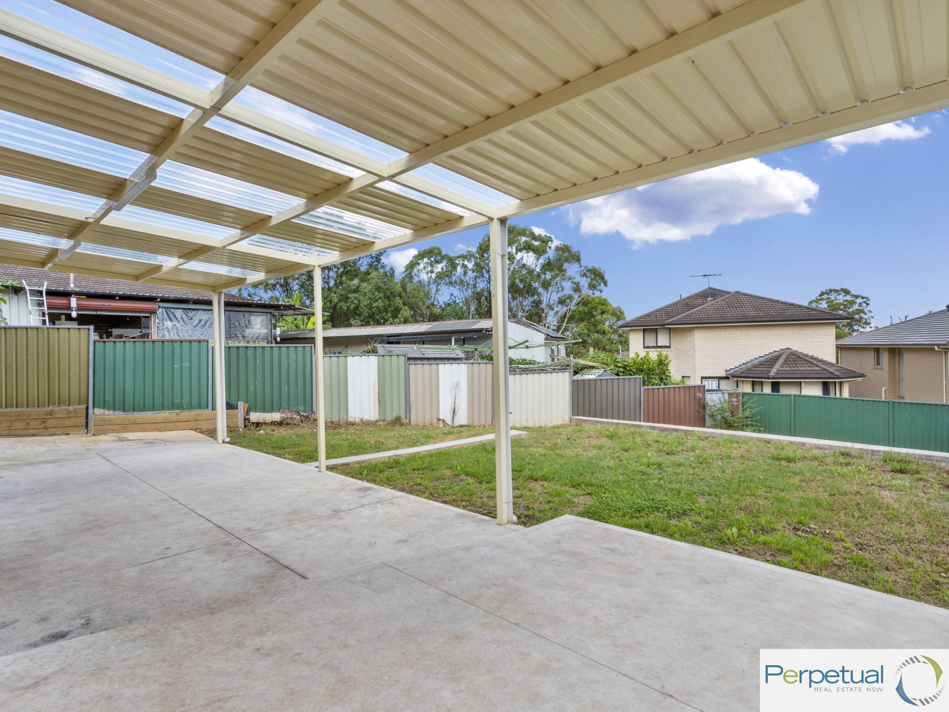 - Covered outdoor entertaining area that flows to a private, grassed backyard